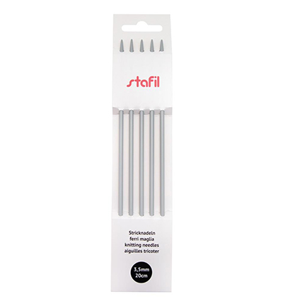 Deze set van vijf aluminium breinaalden met dubbele punt is ideaal voor rondbreien zonder naad. Met een lengte van 20 cm en een dikte van 3.50mm kun je moeiteloos sokken, mouwen of andere kleine rondgebreide projecten maken.