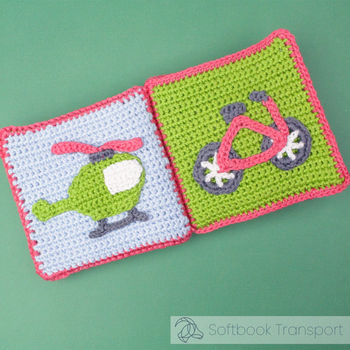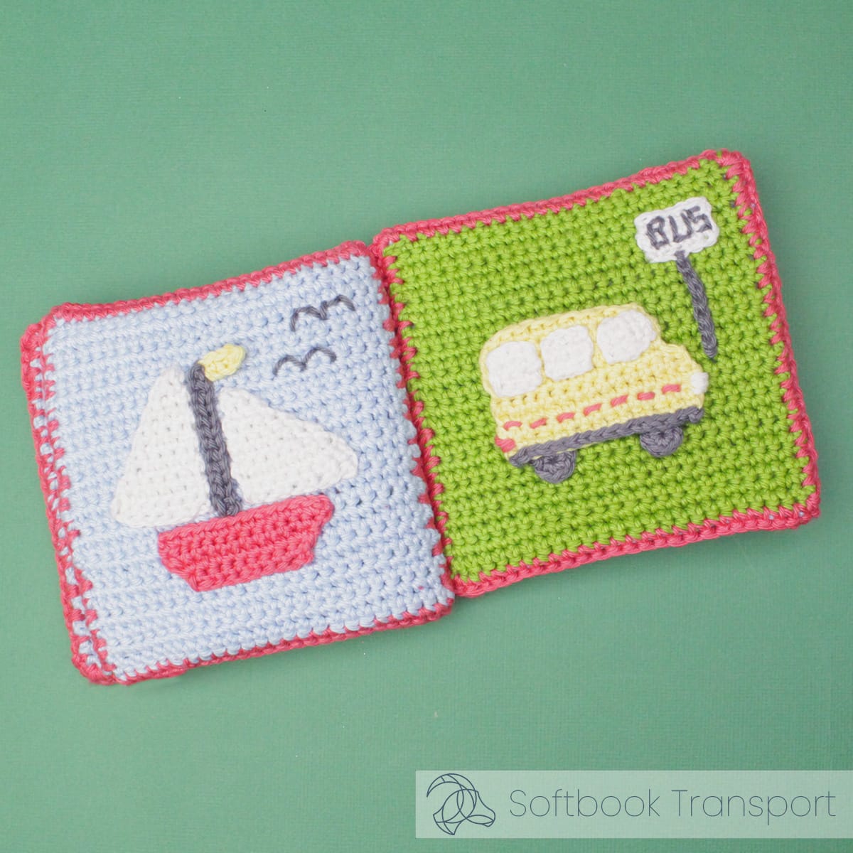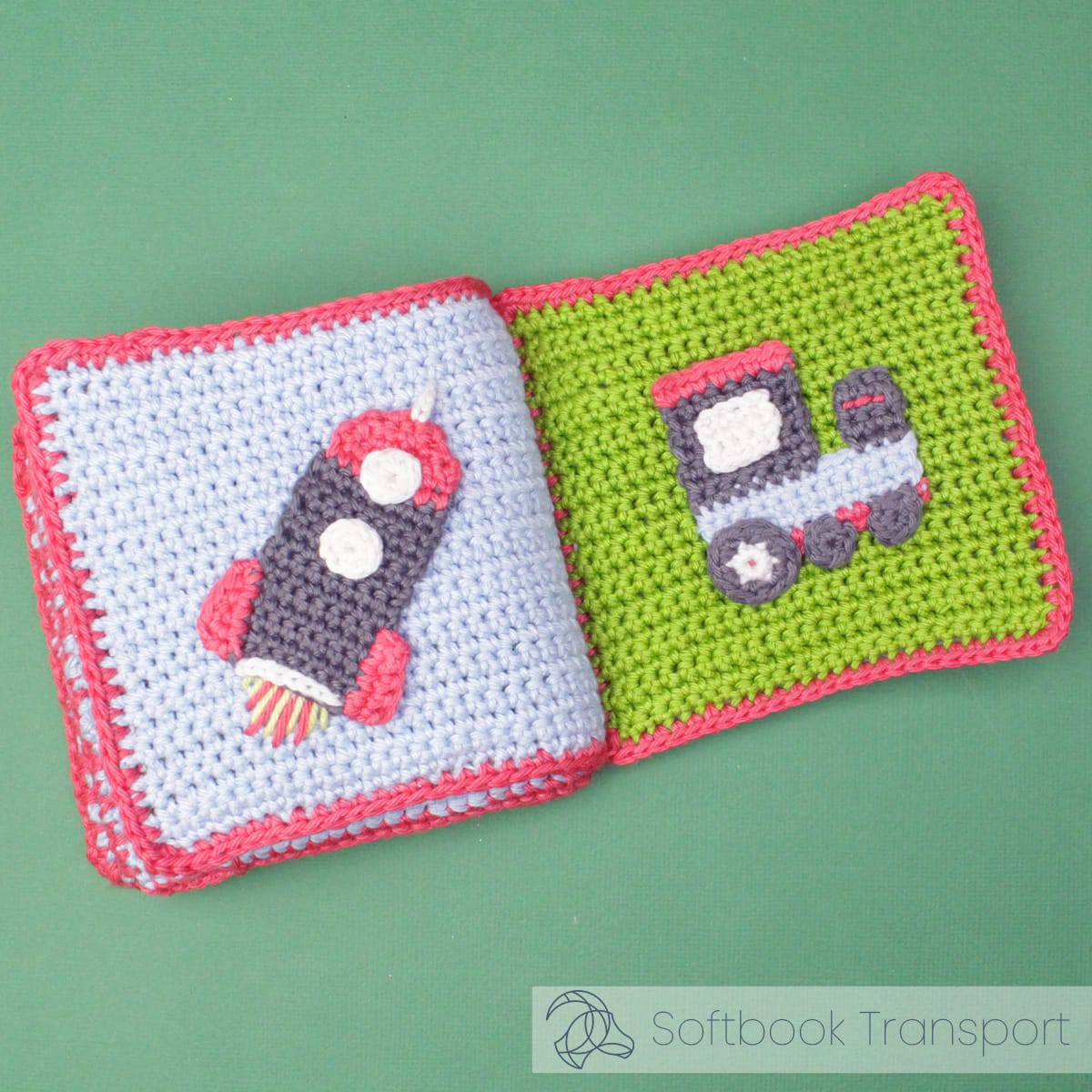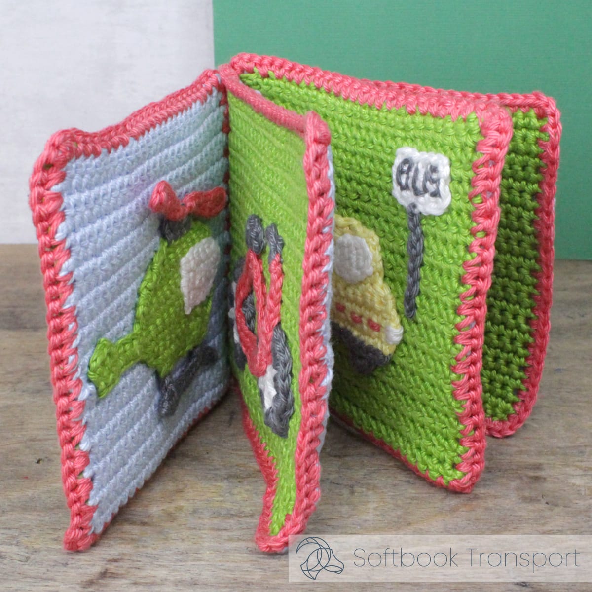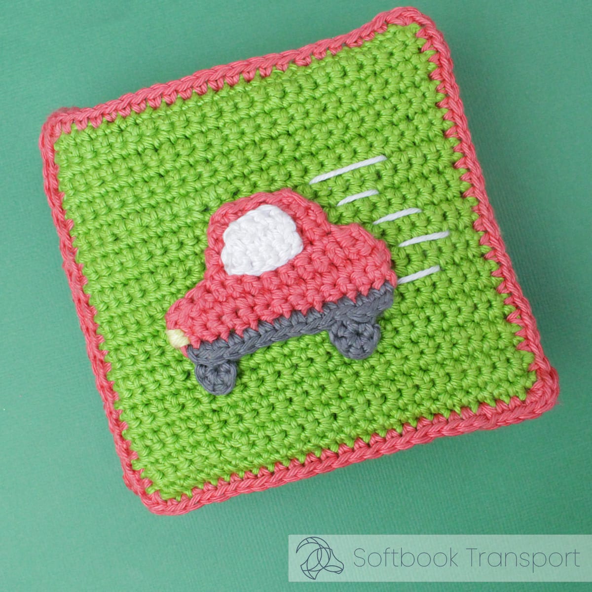Haak een interactief, zacht boek met voertuigen! Dit educatieve project is perfect voor kleintjes. Het pakket bevat alle materialen behalve een haaknaald.